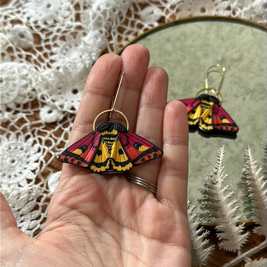 Large Ornate Tiger Moth hoop earrings