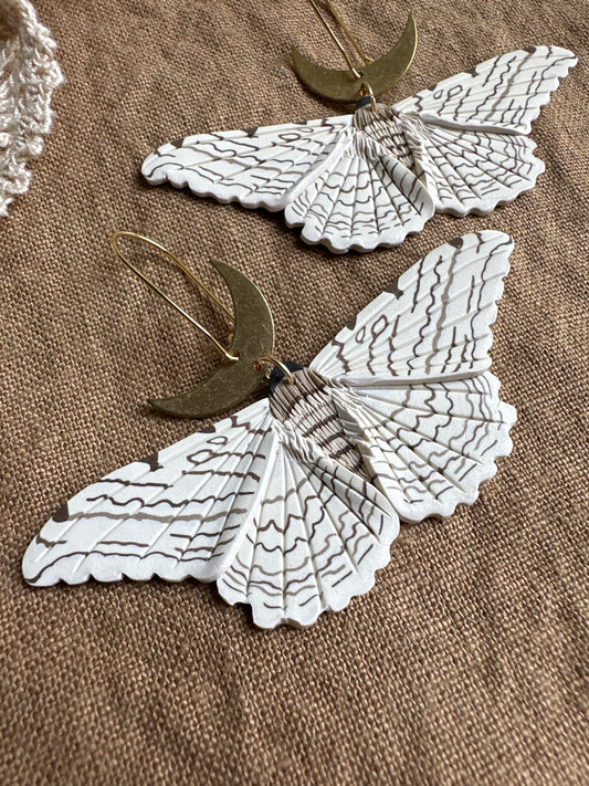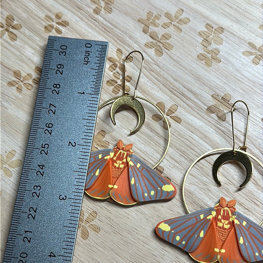 Large regal moth and moon earrings
