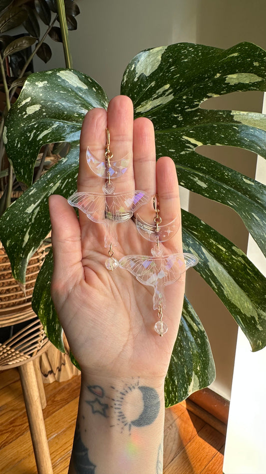 Luna moth rainbow acrylic crystal earrings